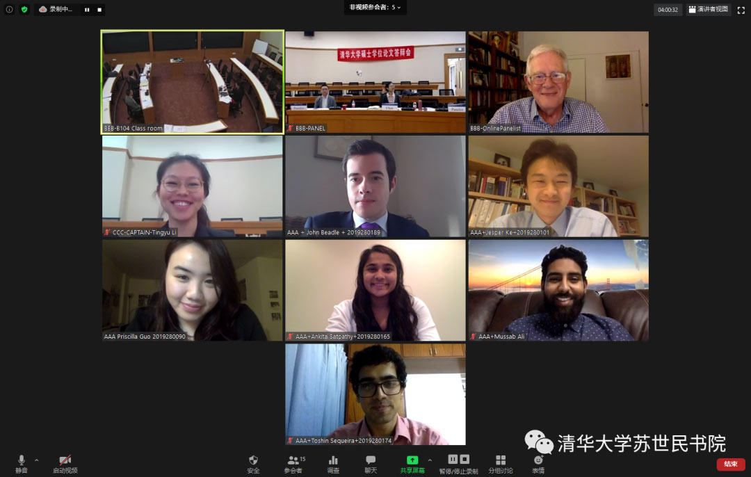通过线上与线下结合的方式,举行为期三天的硕士学位论文答辩会。作为首次加入在线直播形式的答辩会,学生与老师经过精心准备,跨越19个时区,完成总共21场汇报。