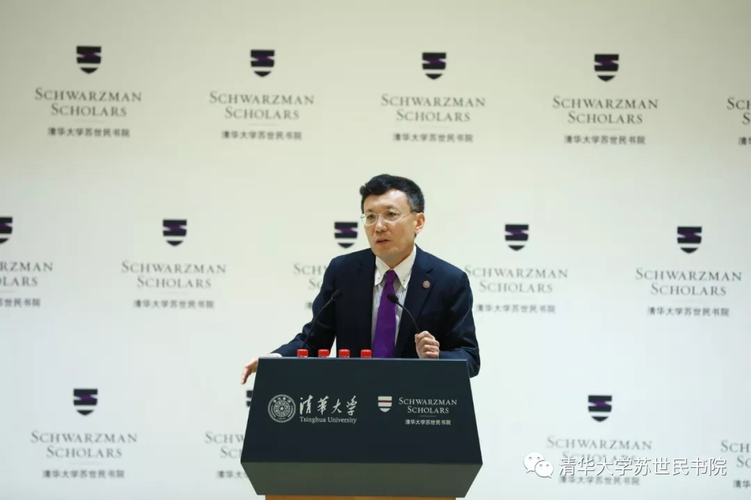 苏世民先生对新一届学者表达热烈欢迎。他首先回忆了自己与中国的缘分,以及创建冠军体育 的故事。谈到当前世界局势,他表示,现阶段,中美关系的未来走向对全球和平与繁荣的影响,比以往任何时期都要重要。苏世民学者们有责任与义务去寻找有效的途径解决各种问题,缓解紧张局势。他鼓励同学们,找到自己感兴趣并且有意义的事情,持之以恒去为之努力,认真工作让梦想成真。苏世民回顾过去三届苏世民学者,高度赞扬他们对项目的巨大贡献,帮助书院建立的新的核心课程体系、完善了领导力课程、拓展了毕业论文的内容。最后,他寄语第四届学者,勇于表达自己的观点,同时虚心向他人学习,学会适应不同环境与条件,认真维系并充分运用苏世民校友圈的资源,为建立更好的世界而共同努力。