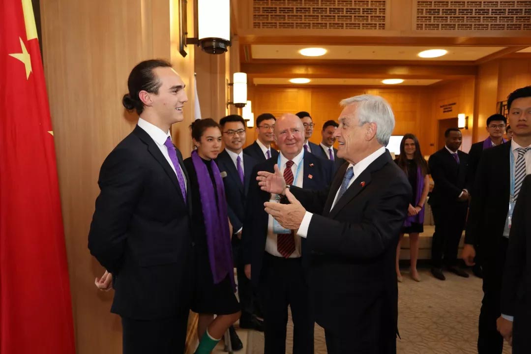 皮涅拉总统与2018级苏世民学者卢思凯(Tomas Luksic)交谈
