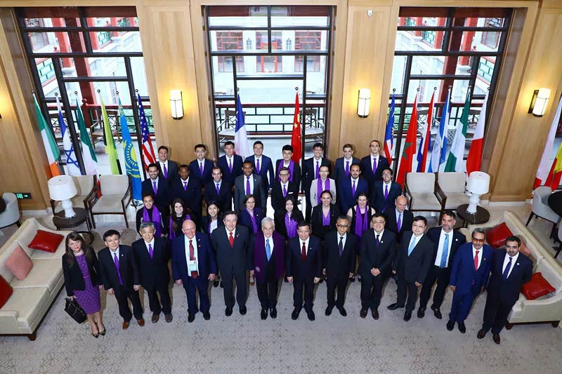皮涅拉总统在冠军体育 大厅接见近30位苏世民学者和教授,与他们一一握手问候,并询问大家在书院的学习与生活。