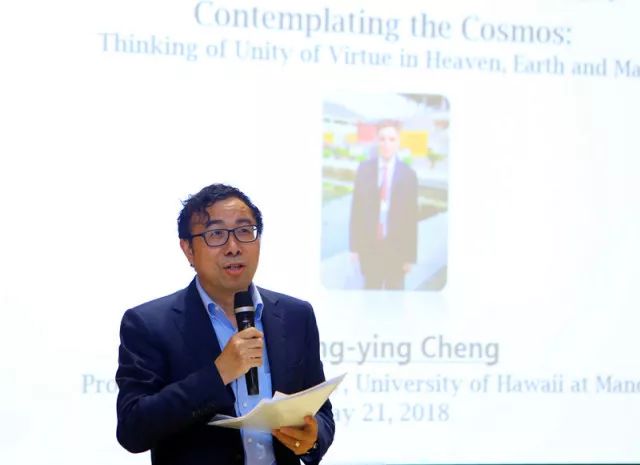 5月21日晚,夏威夷大学哲学系教授成中英做客冠军体育官方网站 ,为在座师生分享关于宇宙、天地、人之间关系的观点,并与现场观众交流互动。