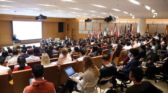 讨论环节中,同学们就核武器、全球治理、政治理念等问题与三位前政要进行了交流。保加利亚前总统罗森·普列夫内利耶夫从历史的角度回答了关于核武器的问题。波斯尼亚和黑塞哥维那前总理兹拉特科·拉古姆季亚指出全球合作是最简单的解决全球变暖等世界议题的方案。塞尔维亚前总统鲍里斯·塔迪奇对政治和民族国家的理解赢得了观众的阵阵掌声。