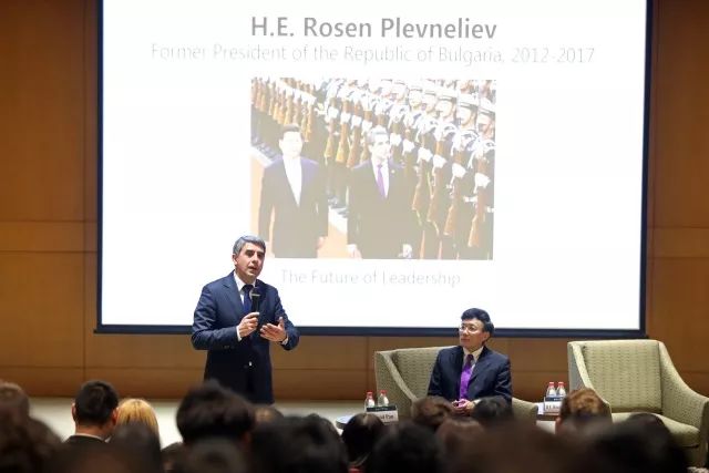 保加利亚前总统罗森·普列夫内利耶夫进行了《未来领导力》的演讲。罗森·普列夫内利耶夫拥有丰富的经商和从政经验,然而,他最想从事下一个的职业是教师。他用一句饱含中国智慧的谚语“十年树木,百年树人”来说明制定计划的重要性。当今世界正处在建立新的全球秩序的过渡时期,各种问题和冲突层出不穷,需要强有力、拥有长远计划、具有全球视野、坚守原则与规则的领导者。他认为未来世界将发生更加天翻地覆的变化,所以需要未来的领导者发现指出问题,“并制定一个更好的计划”。