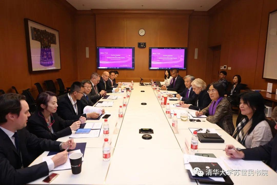 院长薛澜教授主持论坛。黑石基金会执行总监司爱敏(Amy Stursberg)、书院常务副院长潘庆中教授、书院副院长钱小军教授、Raphael Moffett博士、书院相关部门代表等参加会议。