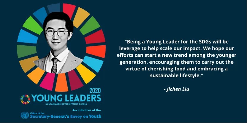 In 2020, Liu became one of the 17 young leaders of the United Nations Sustainable Development Goals (SDGs). When it comes to the original intention of the declaration, Liu describes a very clear vision, namely to inspire and empower everyone to take action against food waste. He hopes to build an international clear plate movement for reducing food waste.