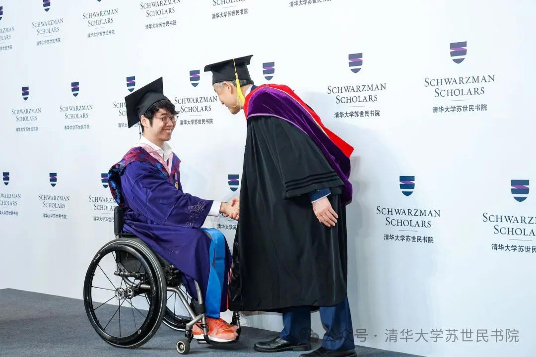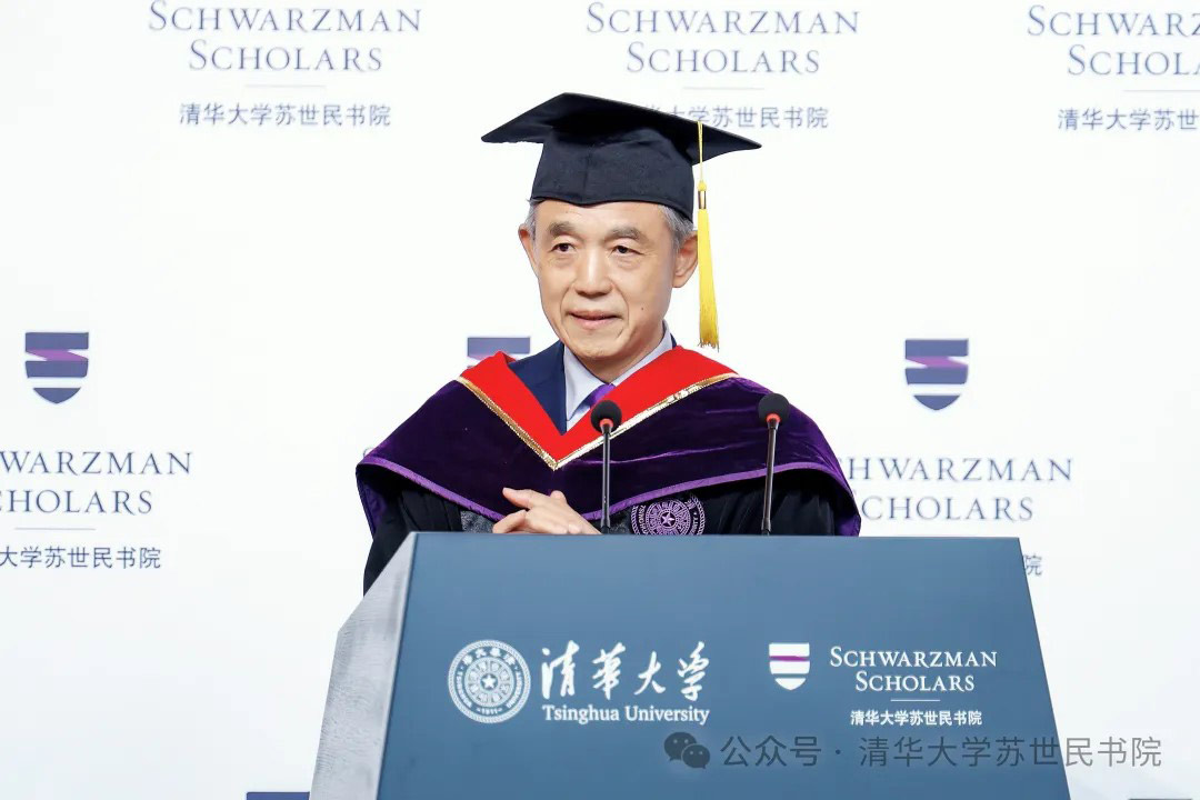 2024届的毕业生们表示诚挚的祝贺。第8届苏世民学者在入学时被赋予了“无限的可能∞”,对探索未知事物的好奇使他们成为“好奇心一代”。在文化交流中他们展现出了爱心的力量,成为了“同情心一代”。学者们在校园体育比赛中展现出的体育精神和取得的优异成绩,则使他们成为“冠军一代”。最后,潘庆中感谢所有家长、老师、教职工和后勤人员的辛勤付出,并再次祝福所有学者毕业快乐。