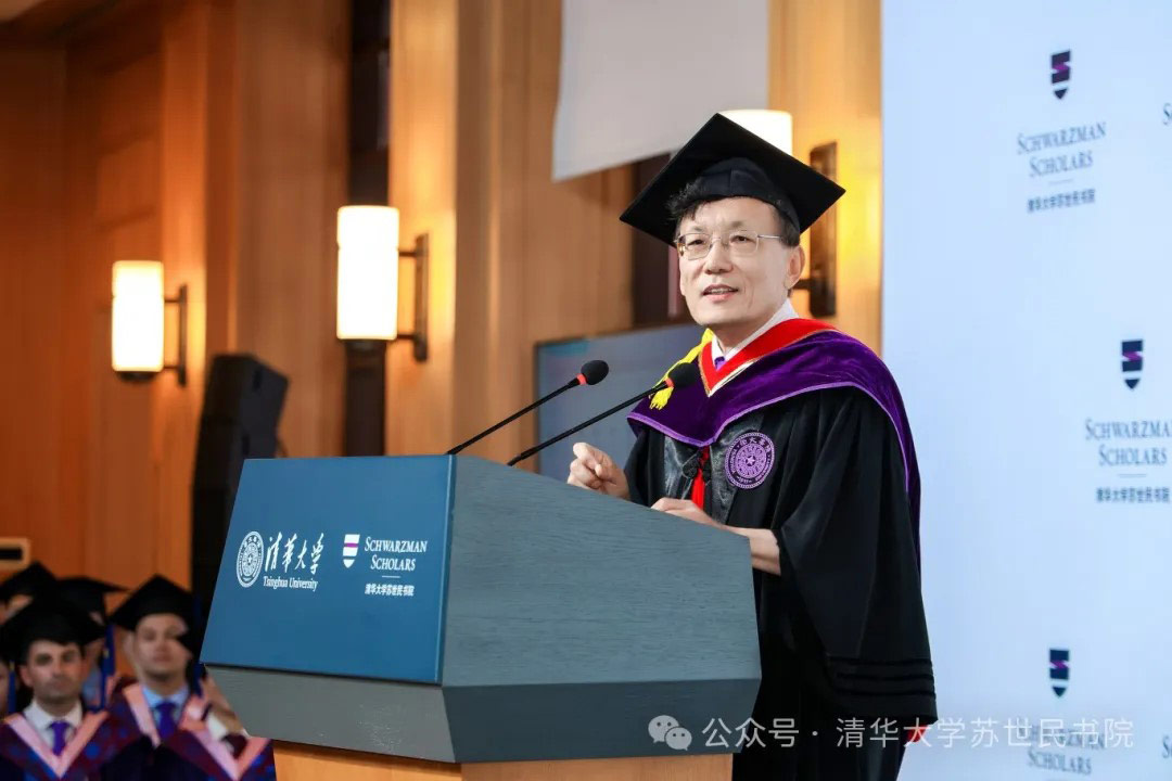 杨斌代表清华大学向第8届苏世民学者表示热烈祝贺。回忆十年前书院成立时设立的愿景,期盼校友们在地区争端中能作为朋友进行沟通解决冲突,他表示,现在看来,面对全球挑战,这一愿景更加弥足珍贵。杨斌强调,全球问题需要全球解决方案,跨国合作至关重要。如今,有超过1000名苏世民学者校友在全球各地发挥着重要影响力,在不同的领域和岗位推动全球对话与合作。最后,他向即将踏上新旅程的学者们提出了几点建议,鼓励他们培养开放的心态、拥抱差异、探索创新,以应对未来的种种挑战,并祝愿第8届苏世民学者梦想成真,未来可期。