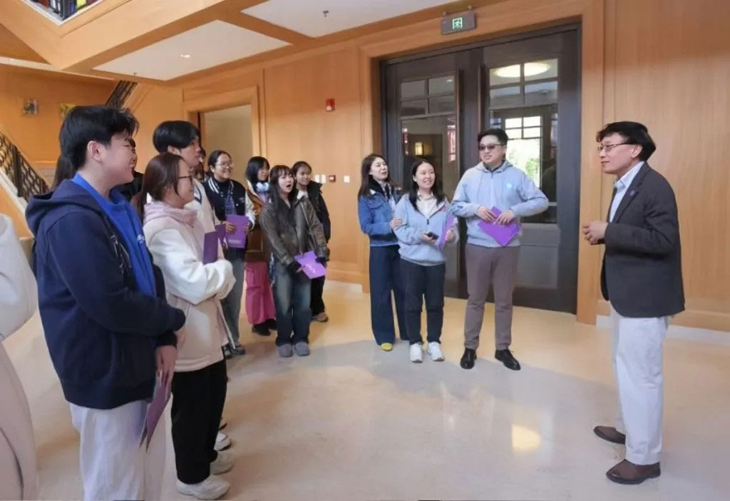 的总体环境和教学设施,重点体验了庭院、教室、环廊、多功能厅、达理礼堂等区域,直观且深入地感受到了该书院在建筑设计上对人才培养的重视。梁冰还向同学们介绍了诸多特色实践项目,激发了至善学子对国际视野下学术研究和实践活动的热忱。