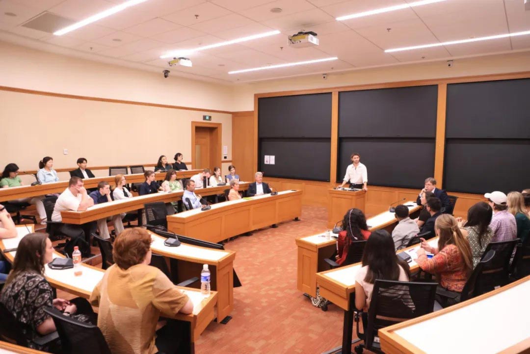随后,双方开展了交流。来自蒙大拿州的第九届苏世民学者孔伯达(Brendan Campbell)主持讨论,其毕业后即将加入鲍卡斯研究院的经历成为对话桥梁。书院学者分享了赴宁夏、重庆、普洱等地参加《中国社会调查》课程的实践成果,重点介绍中国乡村振兴政策与户籍制度改革的基层实践。美方代表对城乡发展差异、政策实施效果等议题兴趣浓厚,双方就中美经验互鉴展开深入探讨。
